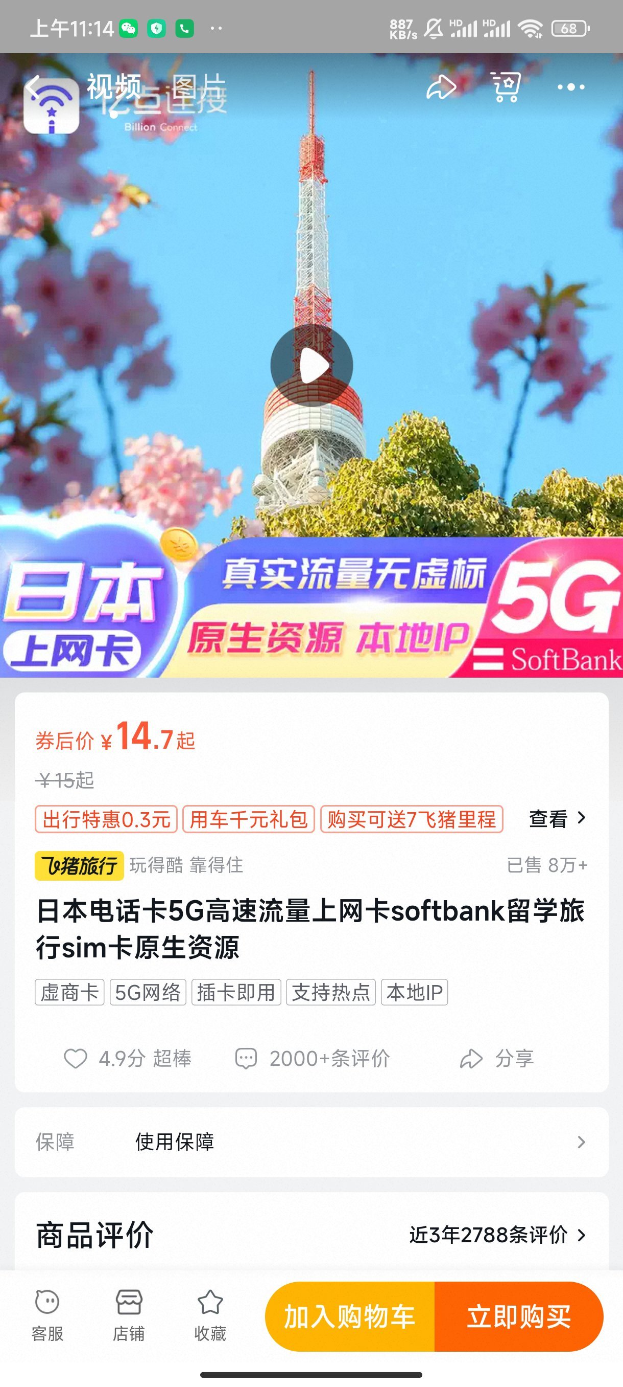 9.手机卡,我手机双卡双待的,所以既买了流量卡也买了移动的境外流量包以防万一,体验下来移动的流量不好用,只在东京能用,在京都根本用不了,所以只建议tb买张流量卡就行了,当然尽量给自己主用卡开个境外通话套餐。
