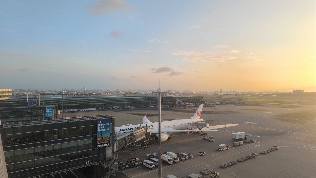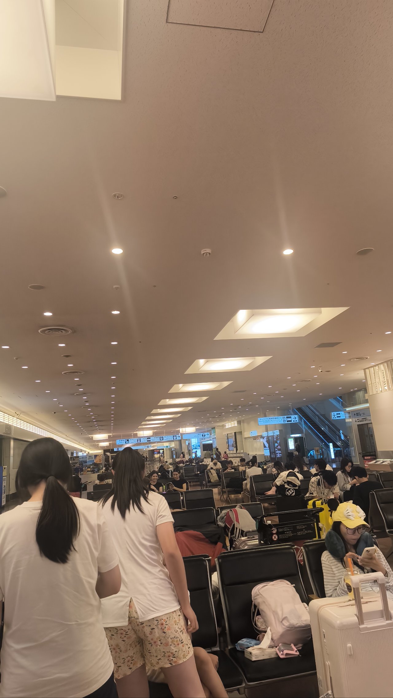 因为第一次一个人旅行,还有点放不开,面对着一张空椅子实在没好意思一个人脱鞋躺下去,很快就被另一个旅客“分享了”斜躺在椅子上2个小时,完全没有睡意,看到已经是将近5点于是便在羽田机场溜达了起来。沿着电梯去往出发厅,看到观景台的标志,继续往上,便看见了——