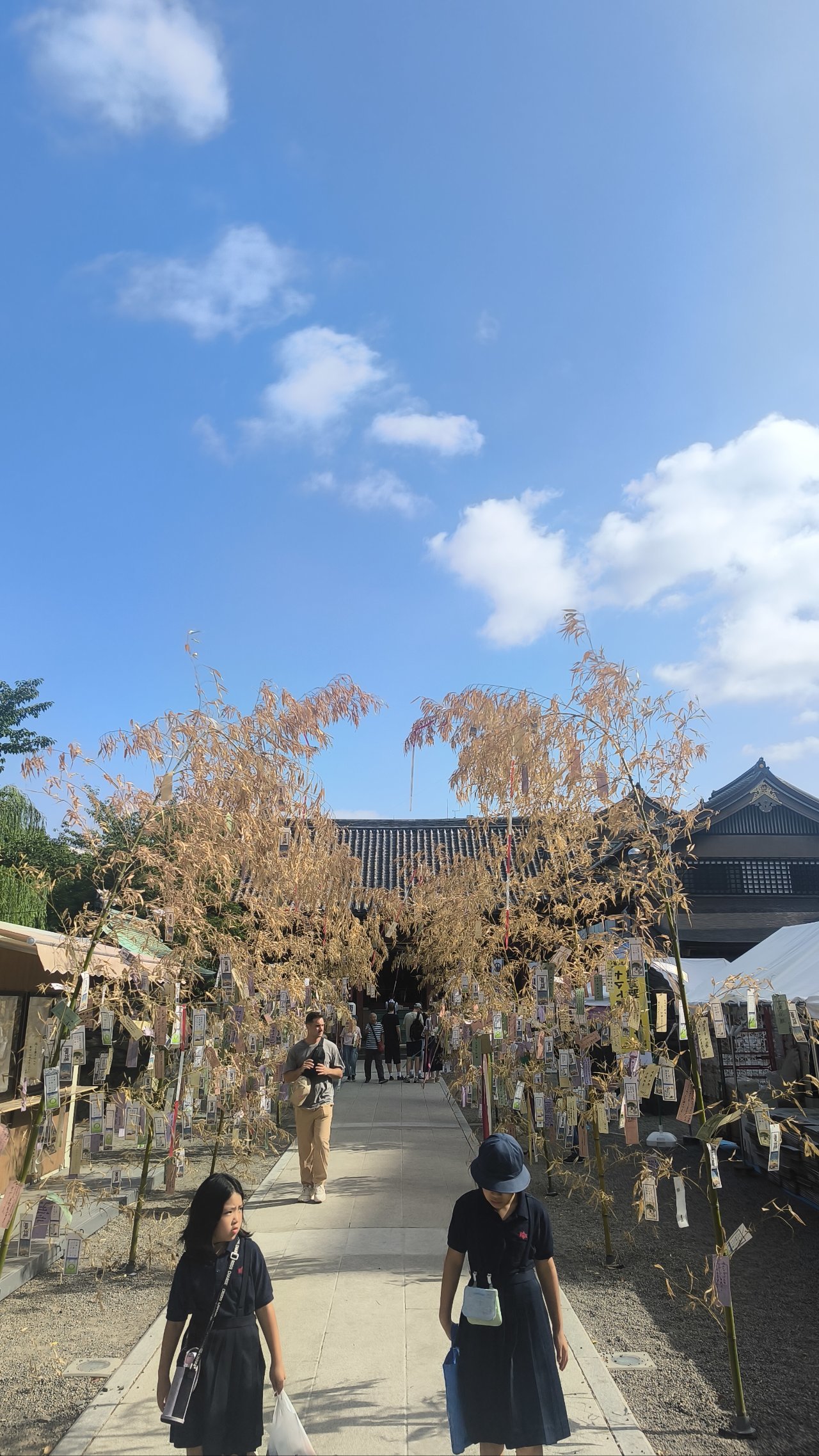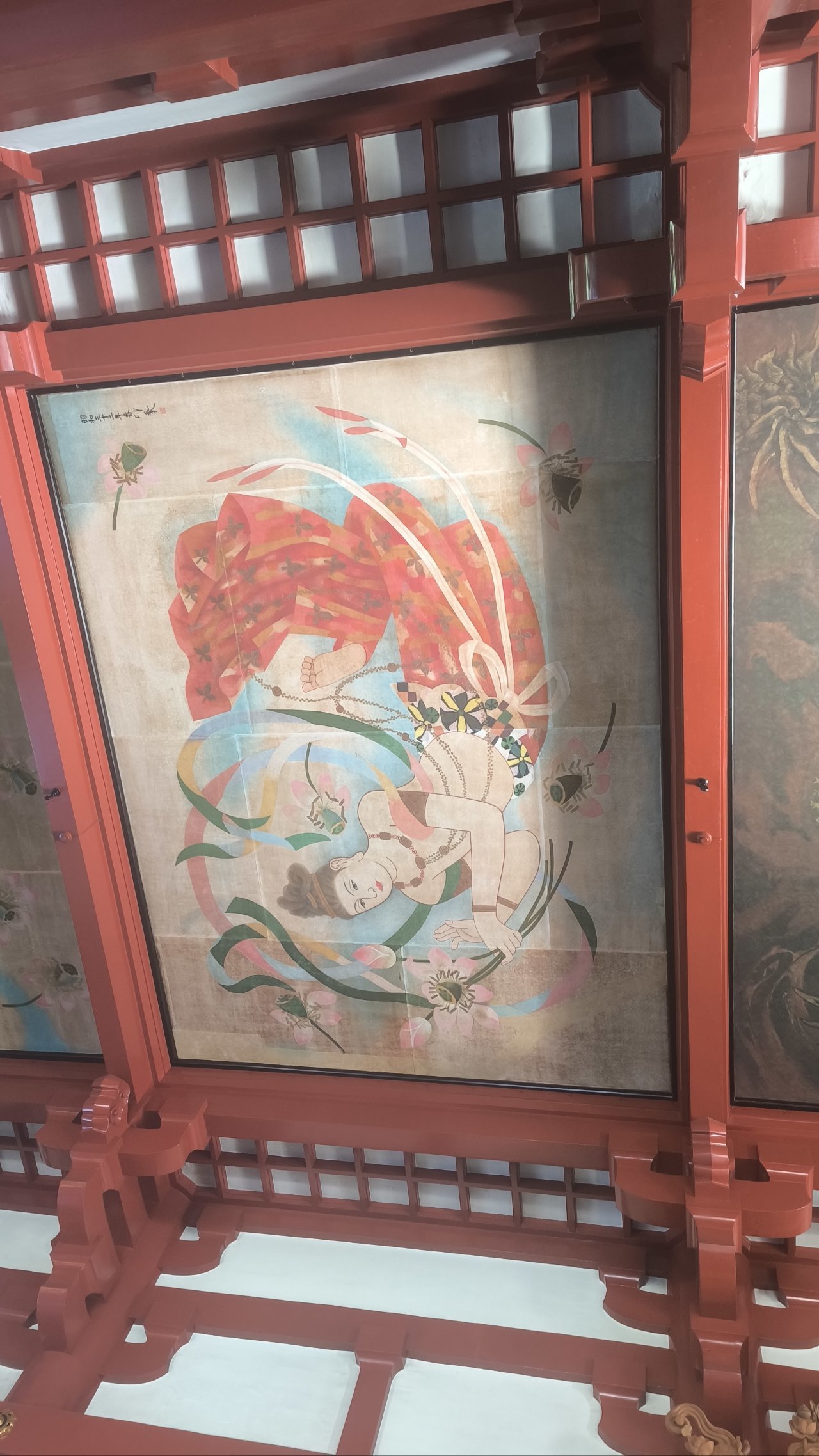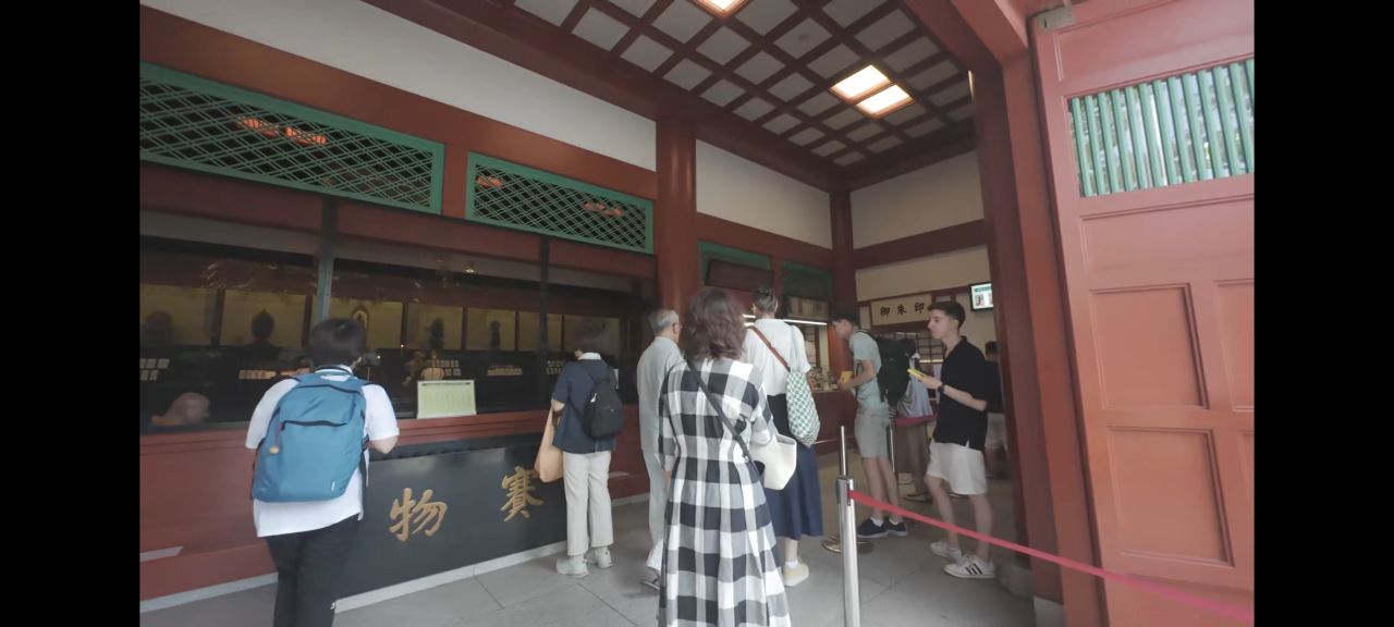 走近大殿,殿顶很高,上面有三副壁画,店内并没有像国内寺庙一样有很大的佛像,内殿两侧是卖御守的地方,基本50一个,站在殿外犹豫了半天最后还是买了200块的御守,回去送家人朋友。