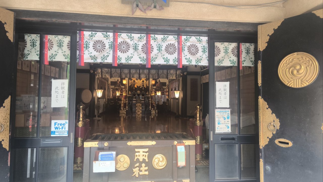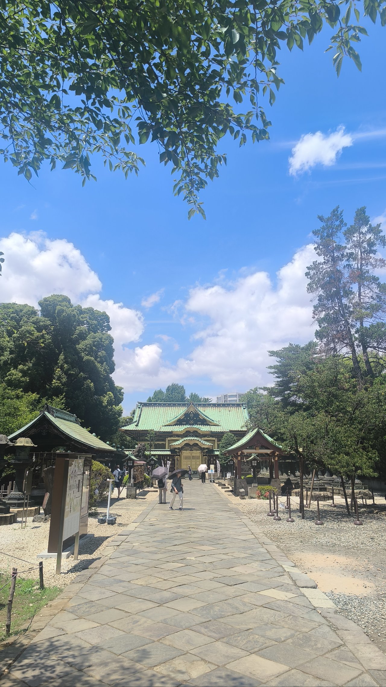主殿西侧是朱印所,500日元一张,大概就是一张纸上面有点鬼画符(书法印章之类的),刚才买御守已经够心疼了。我便没有买,在里面乘了一会儿凉,朱印所前面有个小花园,池子里面有很多锦鲤,树丛中有一些小神龛,早上有些日本老太太在给他们清扫祭拜。
