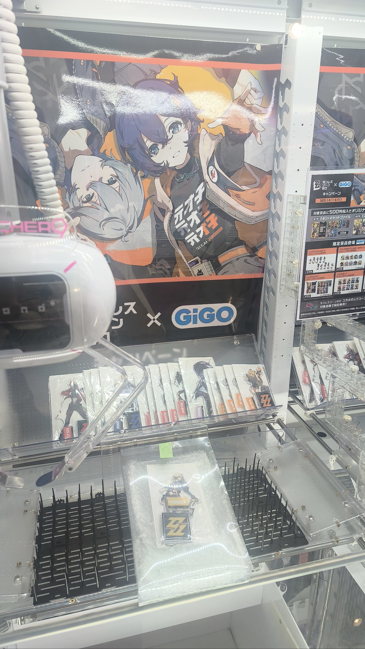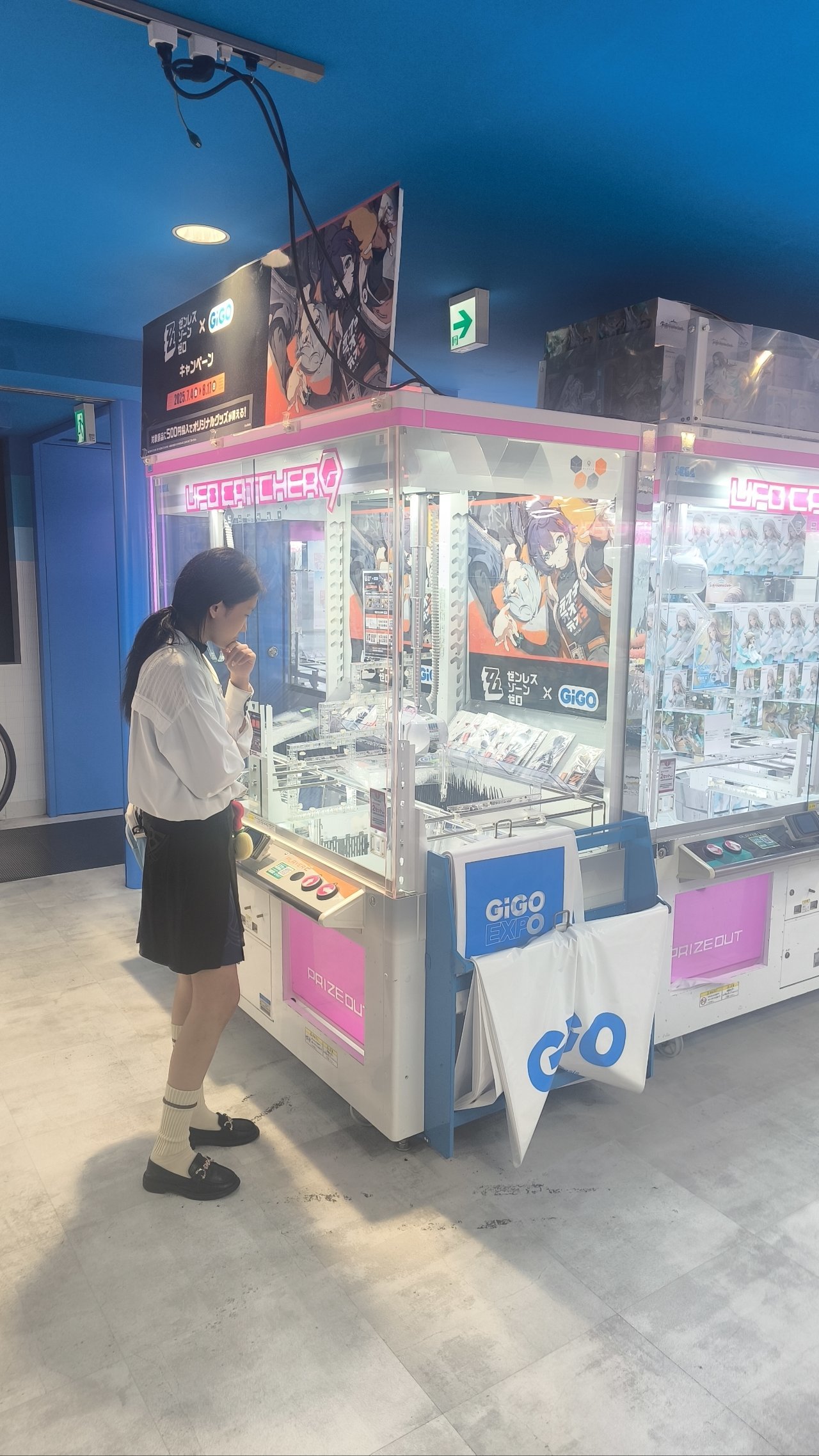 刚巧碰见gigo和绝区零联动,结果这娃娃机里面基本都是tb官店能买到的,在门口看见这个小妹妹抓了七八次都没抓中,店员也给他摆两次,后面就搁这边一脸沉思。我看来下里面是个雨果立牌,她都能在tb上买两个一模一样的了。。。。。