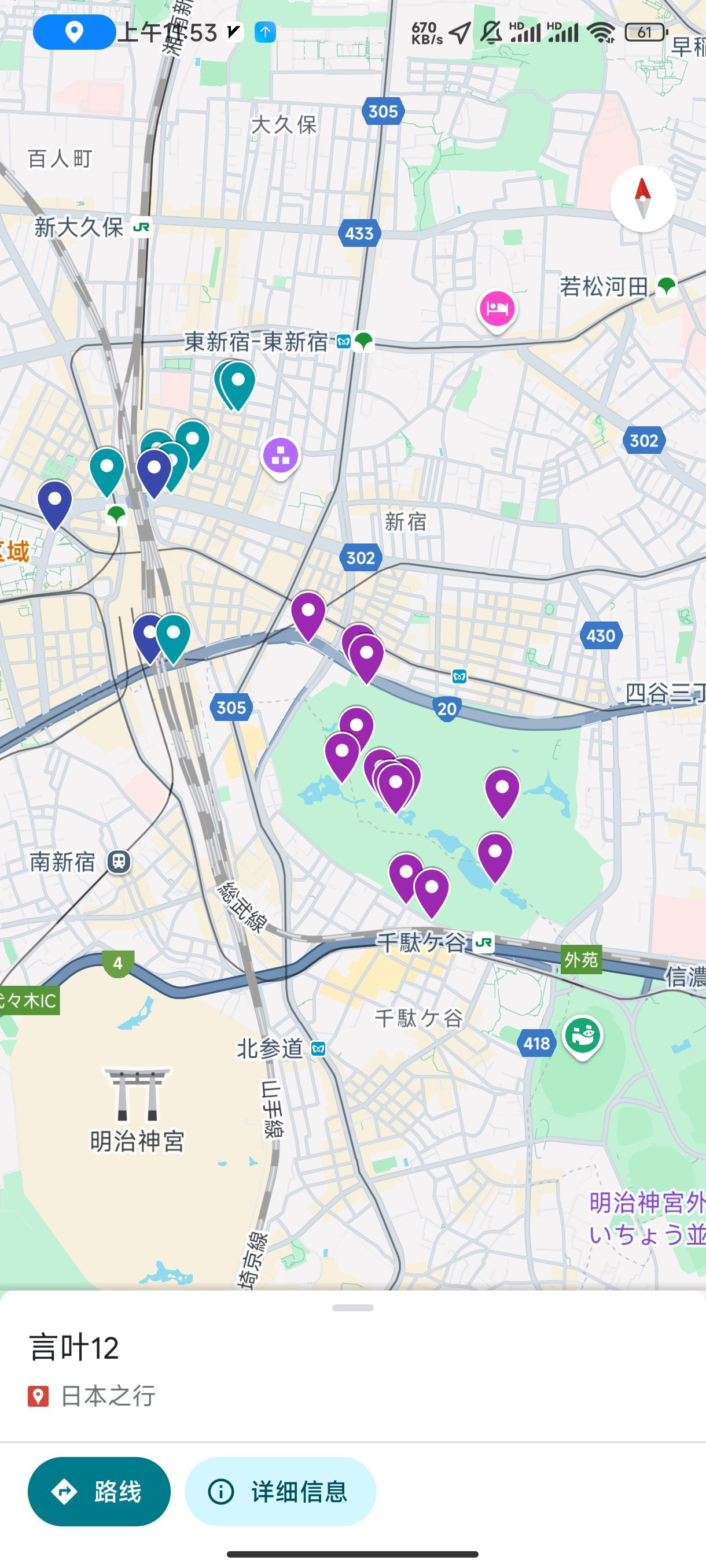 然后把他们两个结合一下,通过谷歌地图,提前做好属于自己的巡礼地图(需要在电脑上制作)